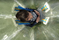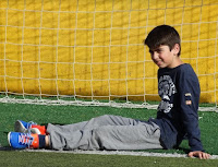 Chegou a casa todo contente! De manhã tem curso e à tarde uma atividade. Hoje foram ao Bounce.